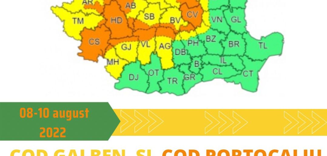 În perioada 08 – 10 august, județul Mehedinți se va afla sub incidența avertizării meteorologice COD GALBEN de instabilitate atmosferică temporar accentuată, iar zona de munte sub COD PORTOCALIU de instabilitate atmosferică accentuată – ploi abundente, conform informării transmise de către Administrația Națională de Meteorologie.