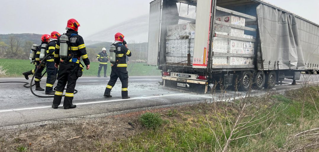 La sosirea pompierilor, incendiul se manifesta la remorca autotrenului încărcat cu piese auto și băuturi carbogazoase.