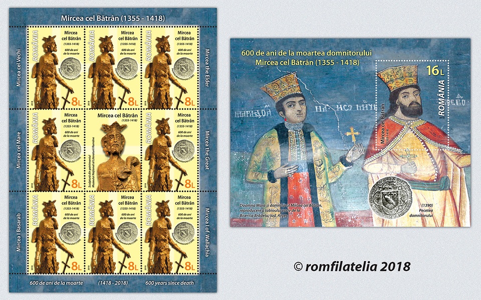 Romfilatelia îl omagiază pe marele voievod al Țării Românești, introducând în circulație emisiunea de mărci poștale Mircea cel Bătrân, 600 de ani de la moarte. Noua emisiune va fi disponibilă începând de miercuri, 31 ianuarie 2018, în magazinele Romfilatelia din București, Bacău, Brașov, Cluj-Napoca, Iași, Timișoara, precum și în magazinul nostru online: http://romfilatelia.ro/store/.