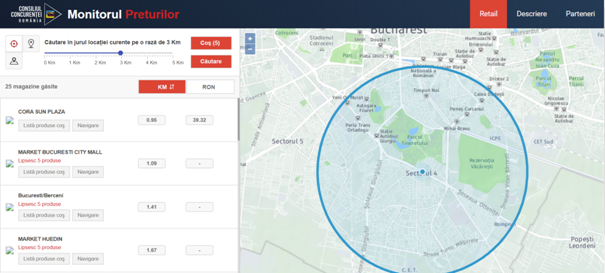 Începând de astăzi avem platforma Monitorul prețurilor în formulă completă. Dacă până acum putea fi accesat doar Monitorul prețurilor carburanților, de astăzi, consumatorii pot verifica atât prețurile alimentelor, dar și ale carburanților, fără a mai fi nevoiți să se deplaseze la locațiile fizice ale magazinelor, respectiv ale benzinăriilor. Practic, au la îndemână un instrument pe care îl pot folosi pentru a-și planifica cumpărăturile și alimentarea, fără a avea surprize atunci când ajung la magazin sau la benzinărie. Vor ști care dintre comercianți are cea mai bună ofertă, precum și suma de bani pe care o vor cheltui, deoarece au calculat-o în prealabil”, a declarat Bogdan Chirițoiu, președintele Consiliului Concurenței.