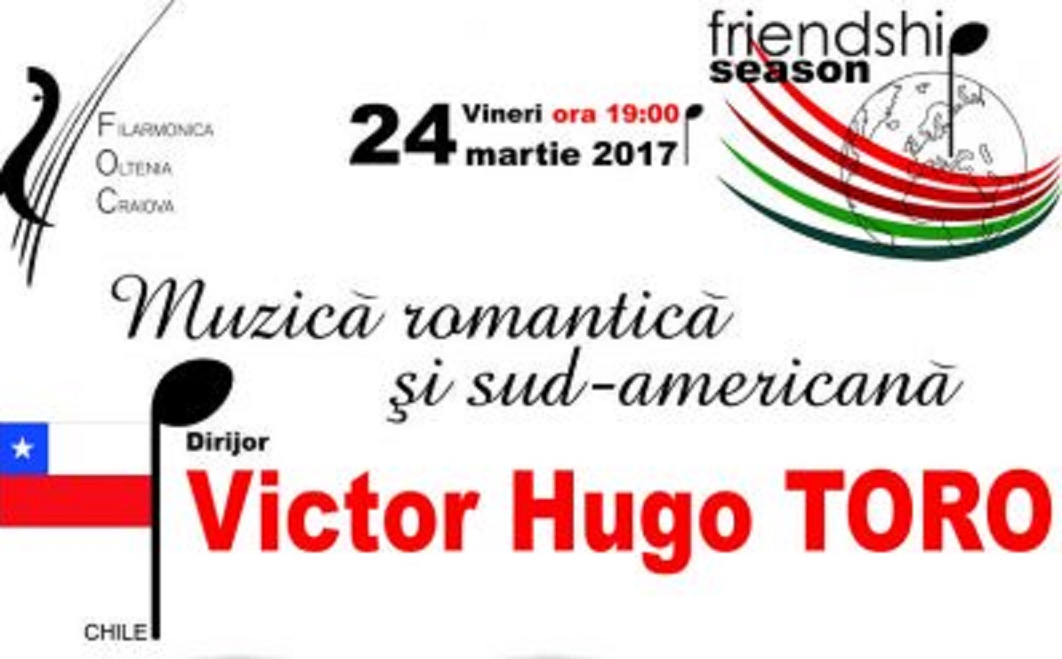 Săptămâna cu numărul 19 din „Stagiunea Prieteniei” aduce ritmurile febrile, sud-americane, în sala de concerte a Filarmonicii „Oltenia”. Un repertoriu irezistibil de antrenant şi o lucrare prin excelenţă romantică, semnată de Robert Schumann, este interpretat de simfonicul craiovean, sub bagheta dirijorală a tânărului Victor Hugo Toro – la pian Dana Radu, deținătoarea Premiului Criticii Muzicale pentru cel mai bun pianist acompaniator.