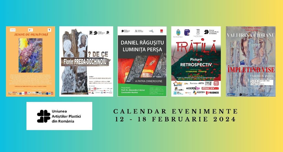 La ora 18,30, va fi vernisată la Galeria Universității de Arhitectură și Urbanism ”Ion Mincu” (Strada Academiei 18-20), expoziția „A patra dimensiune”, cu lucrări semnate de Luminița Perșa și Daniel Răgușitu. Prezintă Alexandra Crăciun și Constantin Hostiuc.
