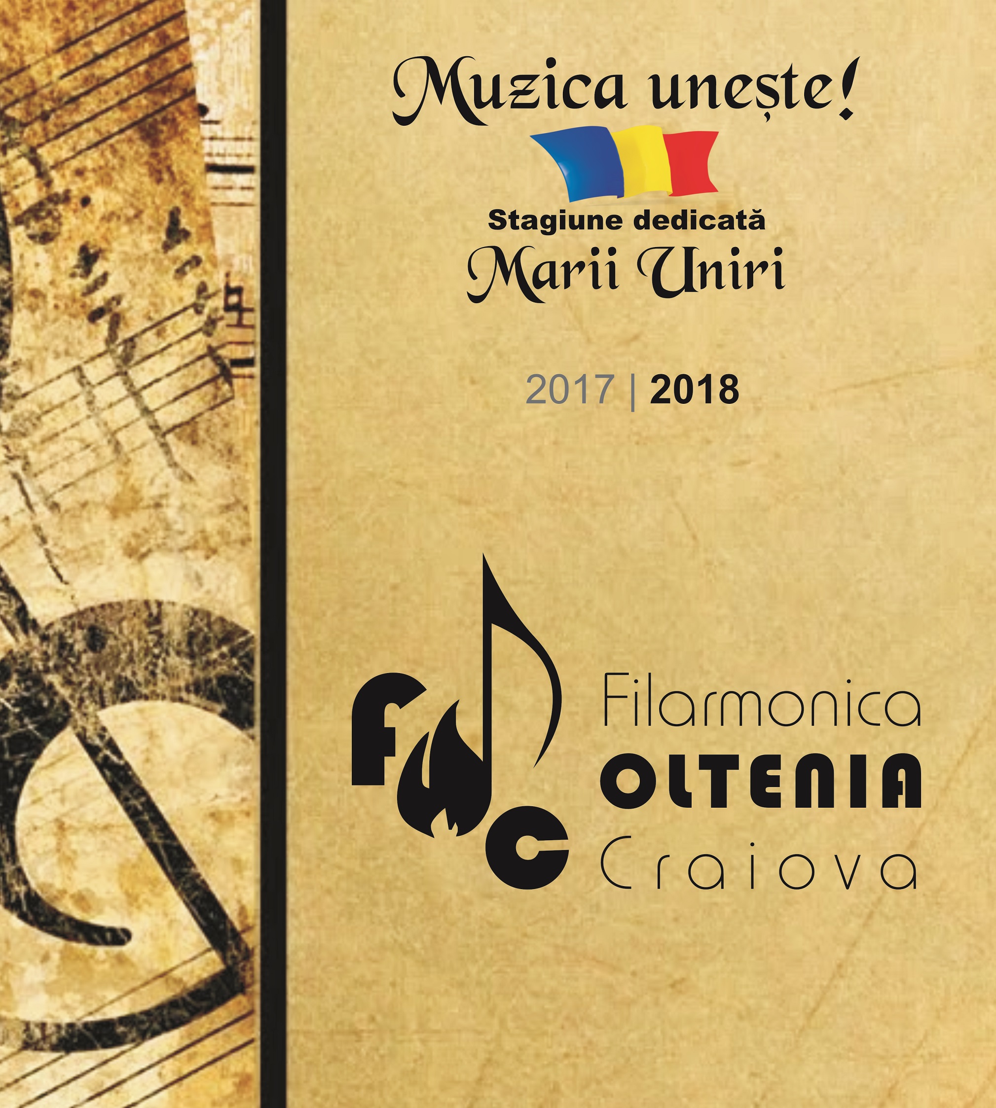 Stagiunea „Muzica uneşte” coincide cu sărbătorirea centenarului Marii Uniri, un moment de excepţie în afirmarea identităţii și tradiţiilor naţionale. Cu acest prilej, în spaţiul public sunt lansate dezbateri şi polemici cu privire la rolul maselor și al personalităţilor în anul plin de istorie 1918. Dincolo de toate acestea, Filarmonica „Oltenia” Craiova readuce mesajul unităţii de gândire şi exprimare, pe calea muzicii – limbaj universal care se adresează direct sufletului.