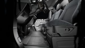 Designerii Ford au mers atât de departe atunci când au luat în considerare modul în care proprietarii ar folosi E-Transit Custom, încât chiar și granulele de la materialele utilizate în cabină și zona de încărcare sunt concepute pentru a utiliza texturi care evită captarea murdăriei și a apei, oferind cel mai bun echilibru între oferirea unei baze solide pentru cizme umede sau noroioase și permițând introducerea și scoaterea cu ușurință a articolelor grele.