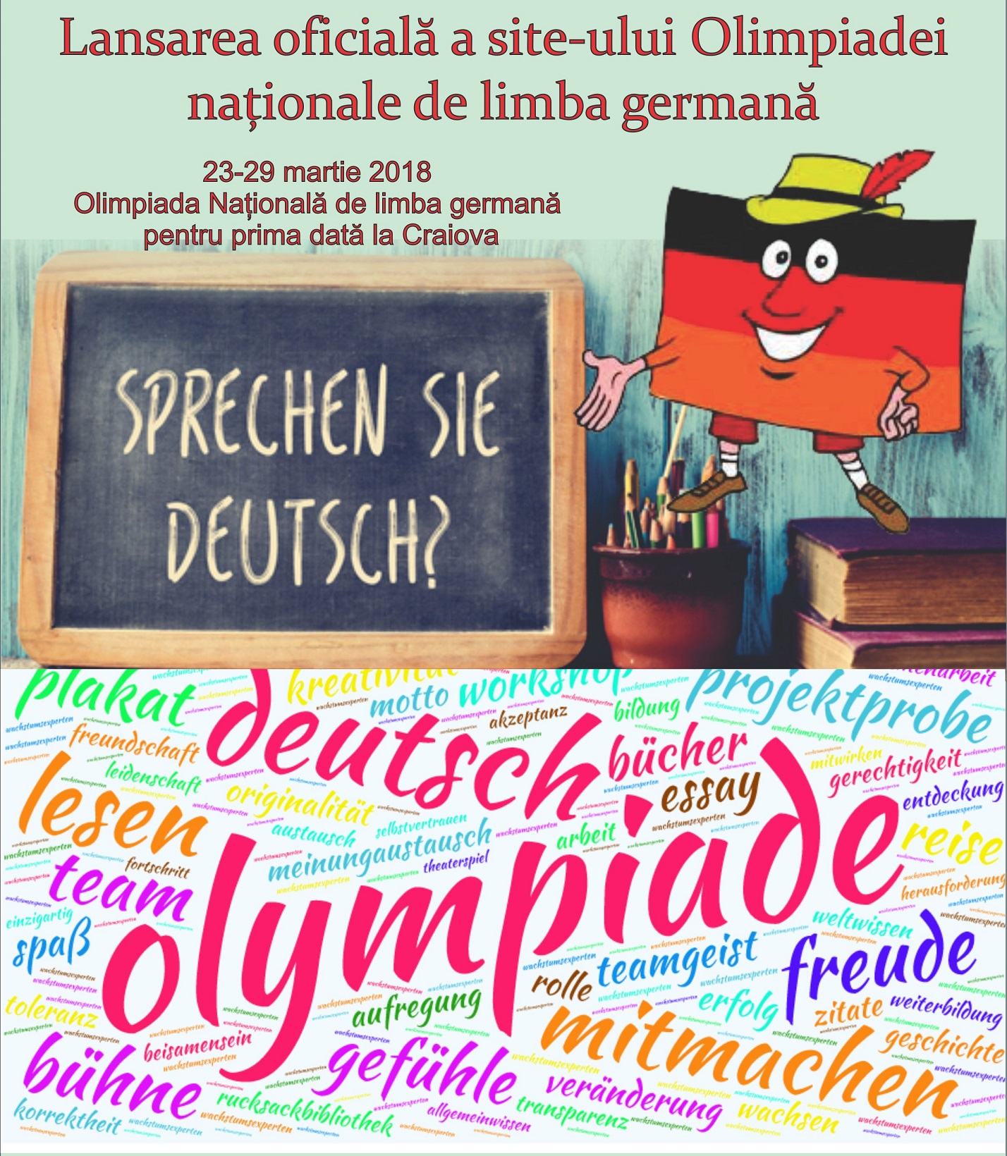 În anul 2018, Olimpiada Națională de limba germană se desfășoară în premieră la Craiova, în perioada 23-29 martie. Inspectoratul Școlar Județean Dolj lansează în mod oficial site-ul acesteimanifestări. La eveniment va participa Leonta Monica Suna, inspector general, dar și alți inspectori, directori de unități de învățământ, profesori și elevi .