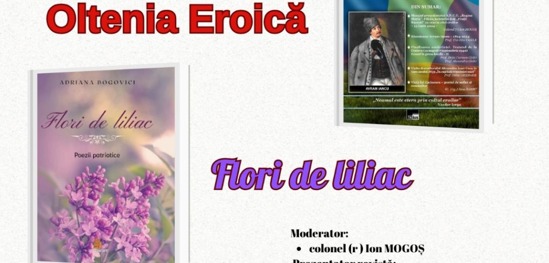 Biblioteca Județeană „Alexandru și Aristia Aman” organizează joi, 27 iunie 2024, în parteneriat cu Asociația Națională Cultul Eroilor „Regina Maria”, Filiala Județului Dolj „Frații Buzești”, lansarea numărului 19/2024 al revistei „Oltenia Eroică”, precum și lansarea volumului „Flori de liliac”, autor Adriana Bozovici.