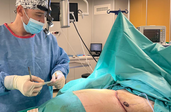 În prima etapă, a avut loc operația de mastectomie subcutanată bilaterală cu dublă incizie, completată de o procedură de liposucție, redistribuirea lambourilor cutanate și redefinirea pectoralului. Complexul areolo-mamelonar a fost redimensionat și repoziționat mai înalt pentru a păstra reperele masculine care au completat la armonizarea procesului de masculinizare a toracelui. La succesul intervenției au contribuit cei 15 ani de activitate marcată de o serie importantă de premiere medicale și tehnologia de ultimă generație disponibilă în cadrul Rețelei Medicale Arcadia.