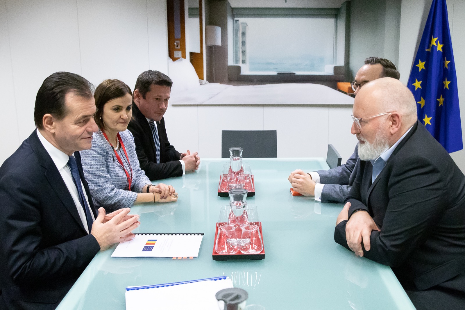 Discuțiile cu Frans Timmermans, vicepreședinte executiv al Comisiei Europene, s-au concentrat pe propunerea recentă a Comisiei Europene privind instituirea unui Pact Ecologic European, misiunea principală a oficialului european fiind coordonarea acestui proiect de anvergură la nivelul Comisiei Europene, în condițiile în care elementele Pactului vor trebui integrate în toate politicile UE. Cu referire la acest subiect, Prim-ministrul Ludovic Orban a evidențiat faptul că implementarea acestui Pact va necesita reforme dintre cele mai ambițioase atât în plan european, cât și la nivel național, cu beneficiile și provocările de rigoare. De aceea, a subliniat importanța definirii unor mecanisme de implementare flexibile, care să țină cont de contextul economic și social din fiecare stat membru. A formulat așteptarea României privind definirea unor mecanisme de sprijin pentru statele membre și regiunile care vor fi cele mai afectate de acest proces, în completarea mecanismelor și resurselor deja existente prin intermediul politicii de coeziune.
