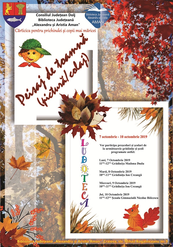 Biblioteca Județeană „Alexandru și Aristia Aman” organizează, în perioada 7 – 10 octombrie 2019, în cadrul proiectului „Cărticica pentru prichindei și copii mai măricei”, prima activitate educațională, cu titlul Peisaj de toamnă – Pictură/Colaj.