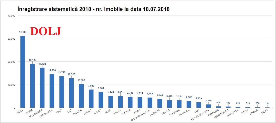 În anul 2018, 100 de UAT-uri dintre cele 101 eligibile din județul Dolj au încheiat contracte de finanțare cu OCPI. Totodată, deja au fost semnate și  95 contracte de prestări  servicii de înregistrare sistematică a imobilelor.