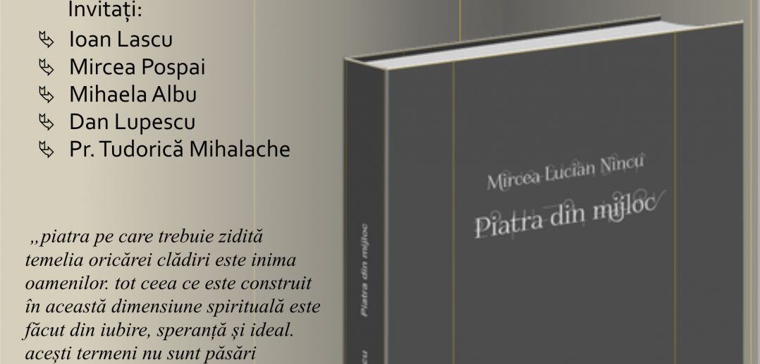 Biblioteca Județeană „Alexandru și Aristia Aman” organizează marți, 15 septembrie 2020, lansarea volumului de carte „Piatra din mijloc”, de Mircea Lucian Nincu.