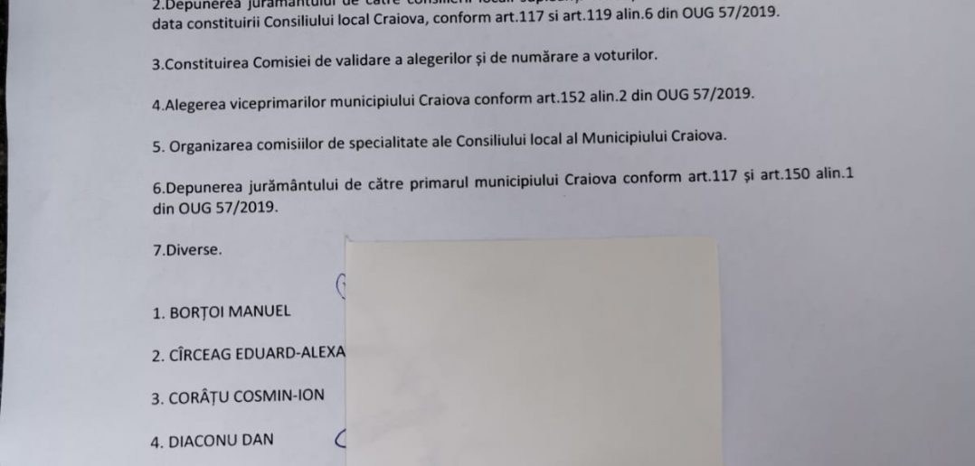 „1) Alegerea președintelui de ședință al Consiliului Local Craiova.