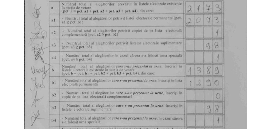 În același proces verbal se precizează că s-au prezentat 4148 de alegători și au fost exprimate 3909 voturi, 132 fiind anulate.