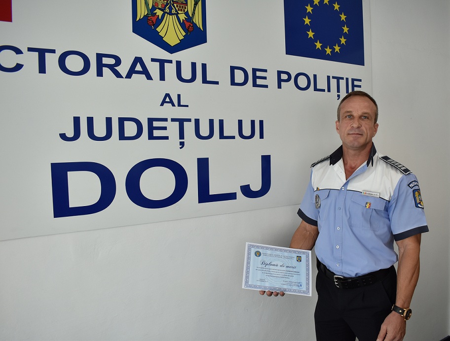 Acesta a fost felicitat atât de colegi, cât şi de conducerea Inspectoratului de Poliţie Judeţean Dolj, de asemenea fiindu-i înmânată şi o diplomă de merit pentru obţinerea unor rezultatele foarte bune la competiţiile sportive la care a participat.