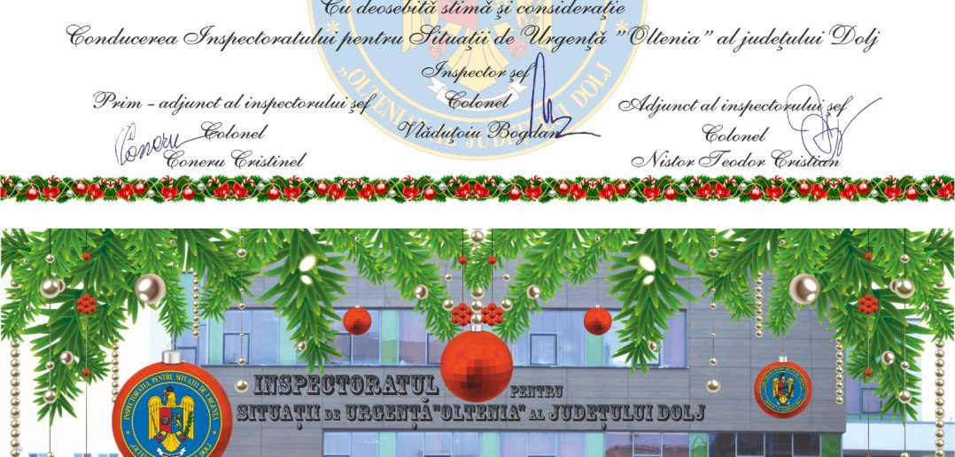 Cadrele Inspectoratului pentru Situații de Urgență „Oltenia” al Judeţului Dolj, cei care au fost ajutoarele lui Moș Crăciun în acest an, vă urează: