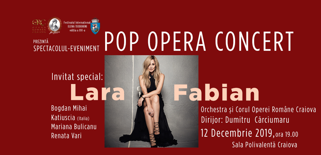 Artista care a reconfigurat concepția generală despre live performance, celebra Lara Fabian este capul de afiș al spectacolului-eveniment Pop Opera Concert, eveniment muzical care face parte din ediția a XVI-a a Festivalului Internațional „Elena Teodorini” organizat de Opera Română Craiova.
