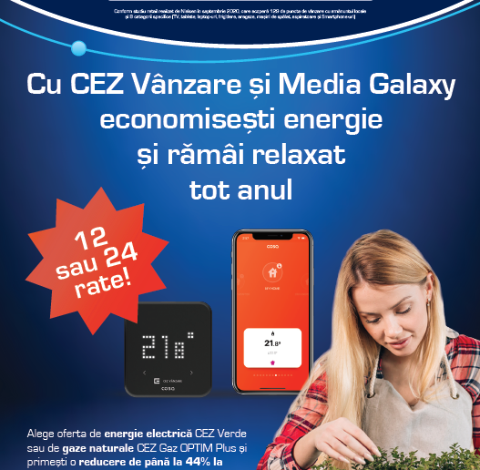 Pachetele CEZ Verde (energie 100% regenerabilă), CEZ Gaz Optim și CEZ Gaz Optim Plus împreună cu termostatul inteligent CEZ Vânzare by Cosa pot fi contractate începând cu data de 23 august în cadrul magazinelor Altex și Media Galaxy, cu o reducere de până la 44% la prețul termostatului.