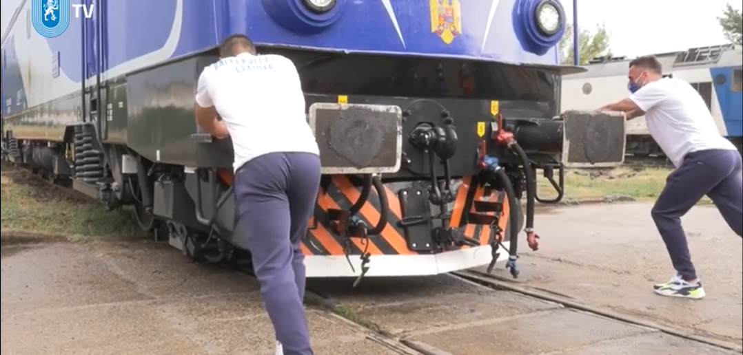 Cei doi s-au luat la „trântă” cu o locomotivă pe care „au împins-o”, promițând că vor face același lucru și cu echipa de sub Podul Grant.