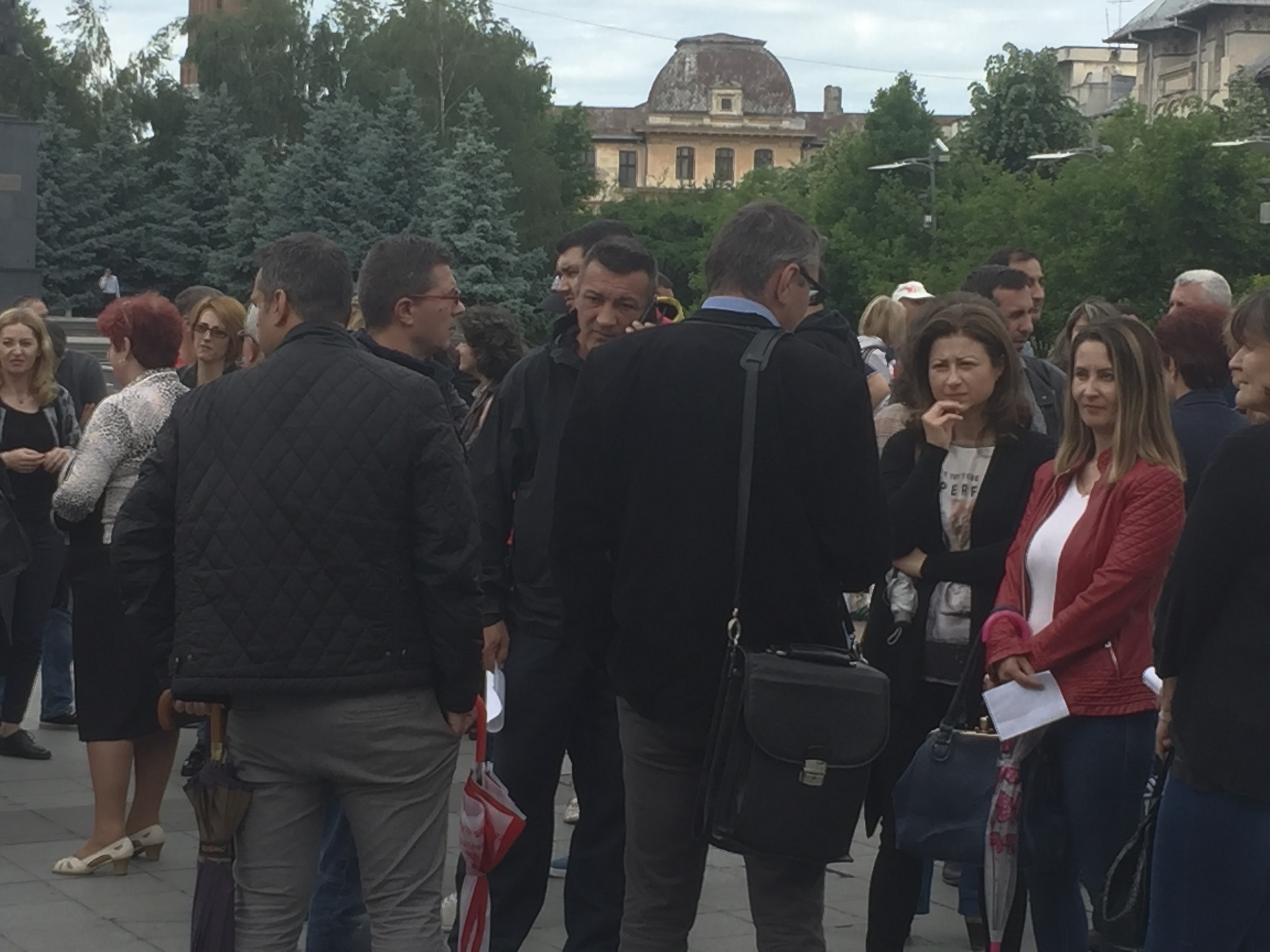 În jurul orelor 13.30, pe Esplanada din Piața Prefecturii au apărut și cei 7 tineri care aveau autorizație de eveniment (vezi foto). Mai trebuie menționat faptul că imediat după dispersarea sindicaliștilor au plecat și cei t tineri autorizați.