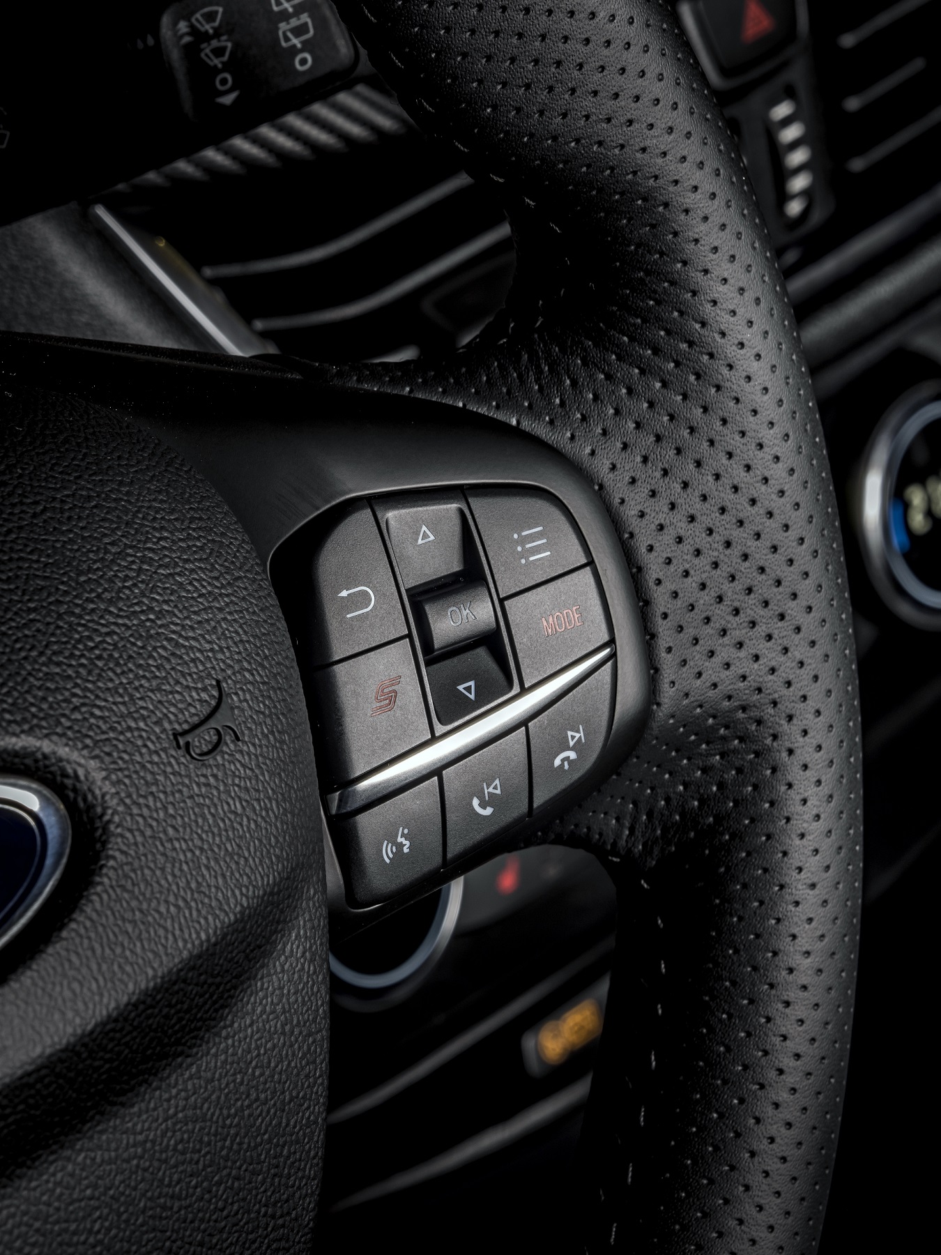 Interiorul este la fel de carismatic, iar oglinzile retrovizoare pliabile electric proiectează emblema ST pe sol la deschiderea portierelor.
