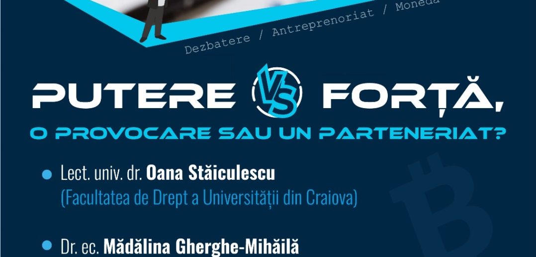 La dezbatere vor participa lect. univ. dr. Oana Stăiculescu de la Facultatea de Drept a Universității din Craiova și dr. ec. Mădălina Gherghe-Mihăilă, expert, consultant, antreprenor. Cei doi lectori invitați vor explora rolurile puterii statului și ale forței antreprenoriale, cât și aspecte asociate criptomonedelor, evidențiind provocările și oportunitățile care pot transforma această dinamică într-un parteneriat autentic.