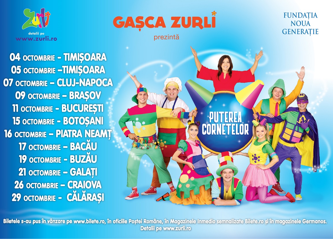 Cu asta vă așteaptă la toamnă cea mai îndrăgită trupă pentru copii, din România. 11 orașe intră pe Harta Zâmbetului Zurli, în Turneul Național “Puterea Cornetelor”.