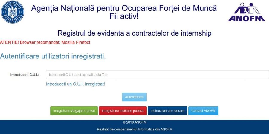 Agenţia Naţională pentru Ocuparea Forţei de Muncă anunţă lansarea Registrului electronic de evidenţă a contractelor de internship – https://www.internship.anofm.ro.