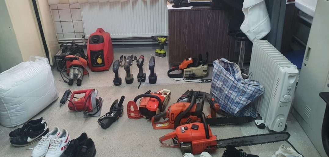 În urma percheziţiilor, au fost descoperite şi ridicate în vederea cercetărilor 20 de scule şi unelte mecanice, obiecte de îmbracăminte, 6 perechi de pantofi sport şi 3 telefoane.