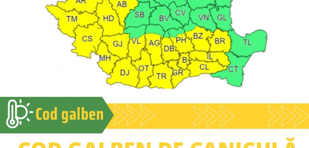 Timp de patru zile, mare parte a teritoriului României se va afla sub atenționare meteorologică Cod Galben, ce vizează val de căldură și disconfort termic ridicat, conform informării transmise de către Administrația Națională de Meteorologie.