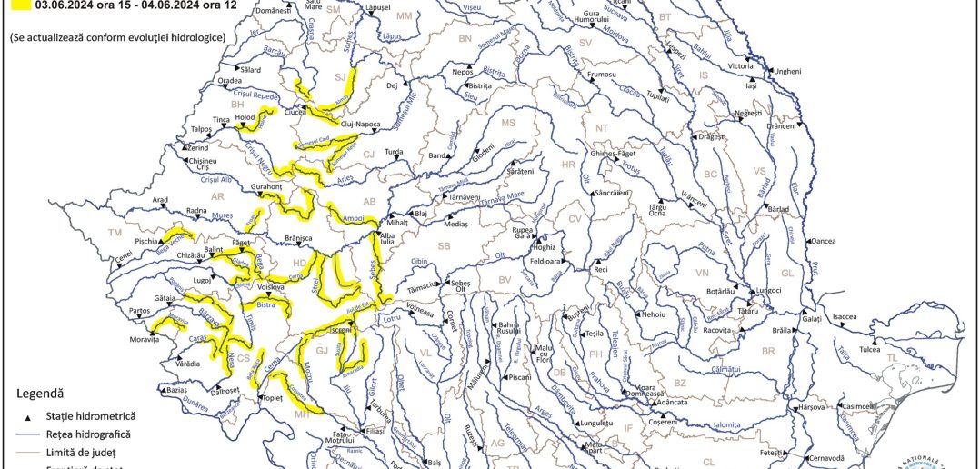 În funcție de evoluția fenomenelor hidrometeorologice vom reveni cu actualizarea prognozei hidrologice. COD GALBEN: Risc de viituri sau creşteri rapide ale nivelului apei, care necesită o vigilență sporită în cazul desfașurării unor activități expuse la inundații.