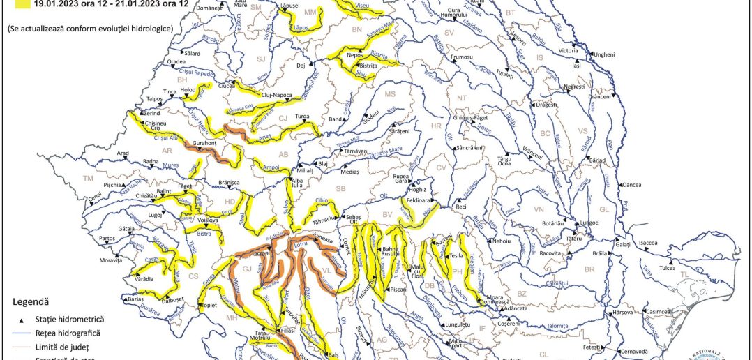 În cursul acestei dimineți, hidrologii Institutului Național de Hidrologie și Gospodărirea Apelor au extins Codul Portocaliu până mâine, 20 ianuarie, la miezul nopții după cum urmează: