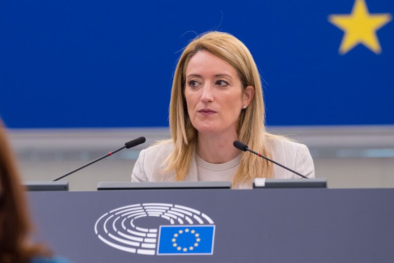 Marți, deputații europeni au reales-o pe Roberta Metsola (PPE, Malta) în funcția de președinte al Parlamentului European până în 2027, cu 562 de voturi în primul tur.