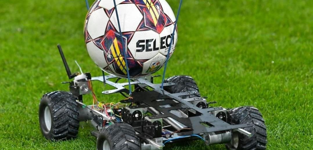 Apariție inedită. sâmbătă seara, la partida dintre Universitatea Craiova și FC Universitatea Cluj. Mingea oficială a fost adusă la centru de către un roboțel electric construit de către studenții Universității din Craiova.