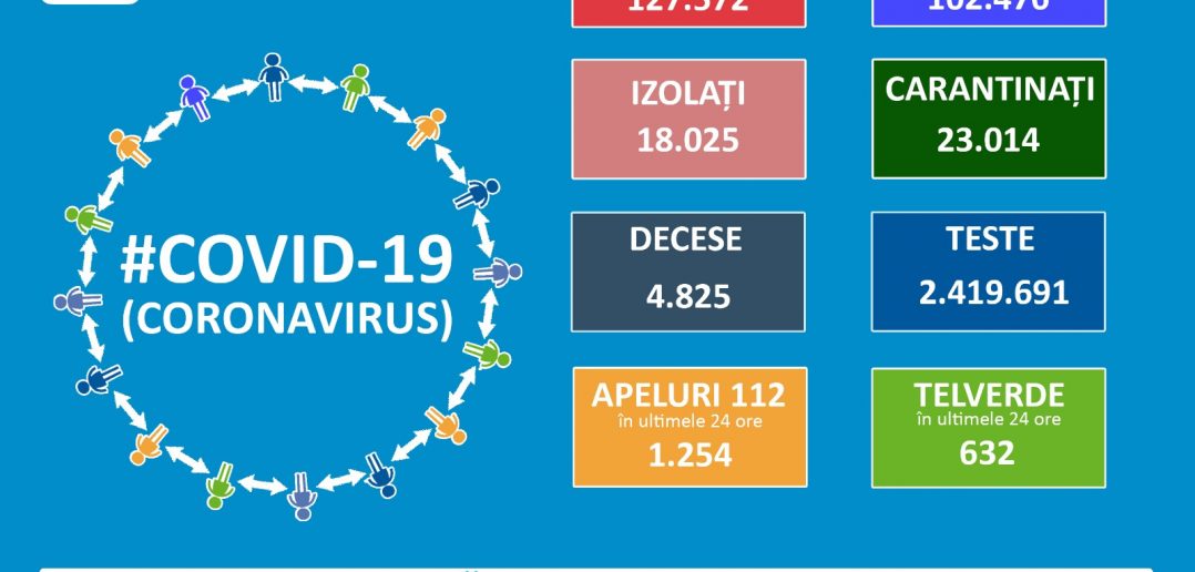 Până astăzi, 30 septembrie, pe teritoriul României, au fost confirmate 127.572 cazuri de persoane infectate cu noul coronavirus (COVID – 19). 102.476 de pacienți au fost declarați vindecați.