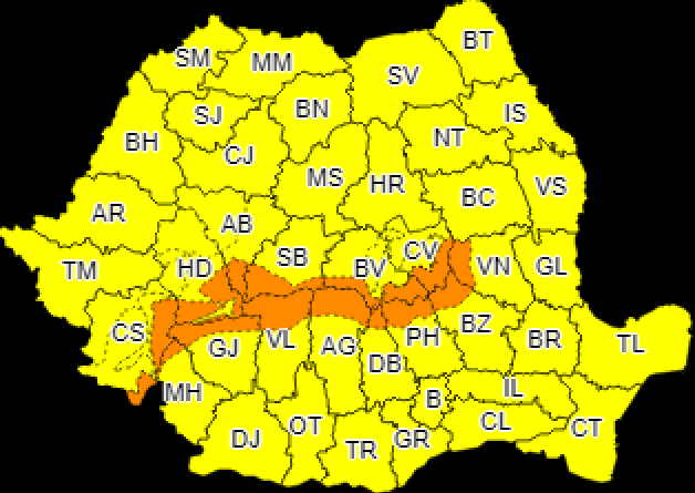 Administrația Națională de Meteorologie a emis o avertizare de cod galben, respectiv portocaliu, de vreme rea pentru întreaga țară. Alerta este valabilă începând de vineri, orele 12,00 și pînă pe 15 februarie, orele 10,00.