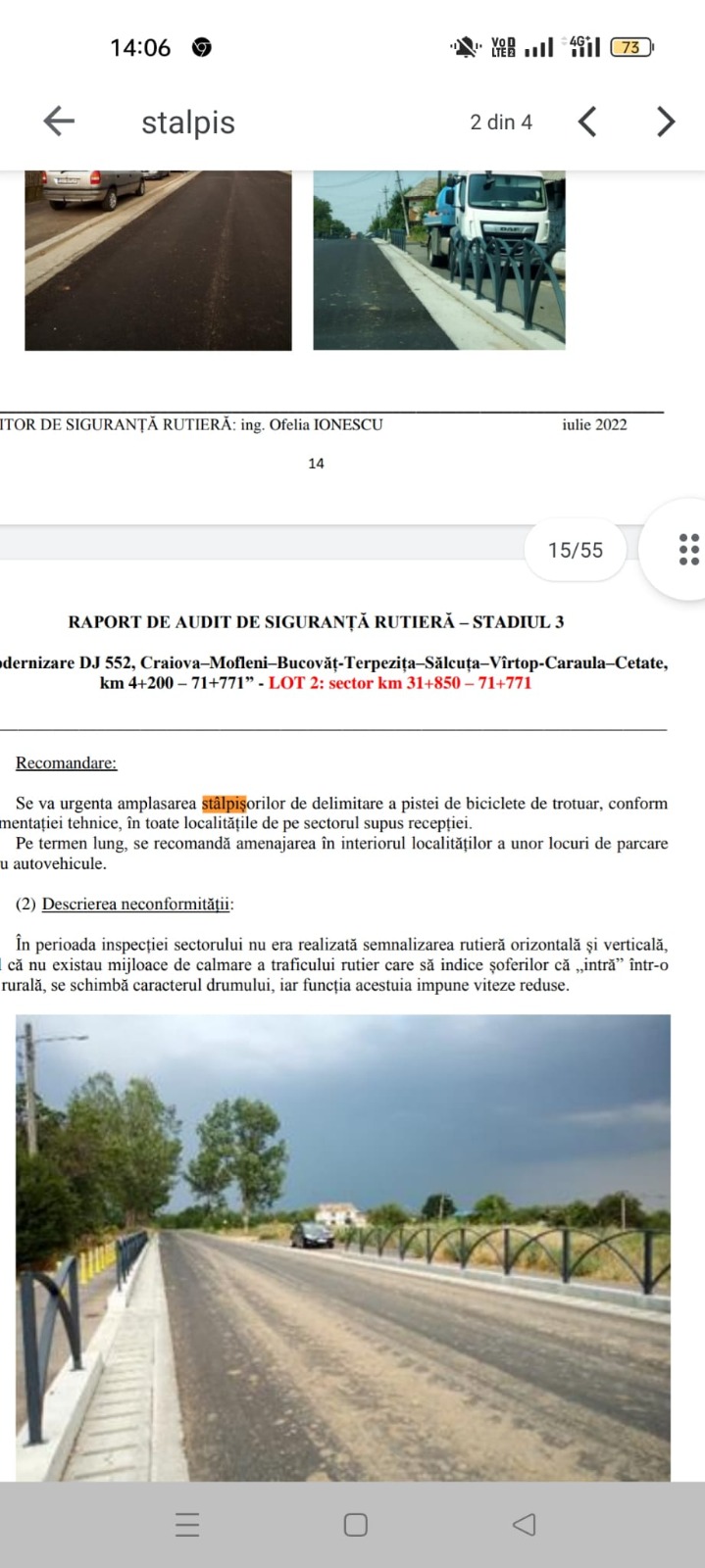 „Pista de biciclete are 1 metru, partea pentru traficul pietonal are 1 metru. Pista de biciclete este destinată deplasării cicliștilor nu neapărat a persoanelor din comunele care traversează drumul, cât tuturor cicliștilor care vor să tranziteze ruta Craiova Cetate pe bicicletă”, a adăugat vicepreședintele CJ Dolj.