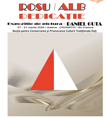 Centrul Judeţean de Cultură și Artă Dolj – Secția pentru Conservarea şi Promovarea Culturii Tradiţionale invită iubitorii artei plastice să aducă un omagiu femeii și feminității la Galeriile „Cromatic“, vineri, 07 martie 2025, în cadrul expoziției „ROȘU / ALB. Dedicație“, realizată de artistul vizual Daniel Guță.