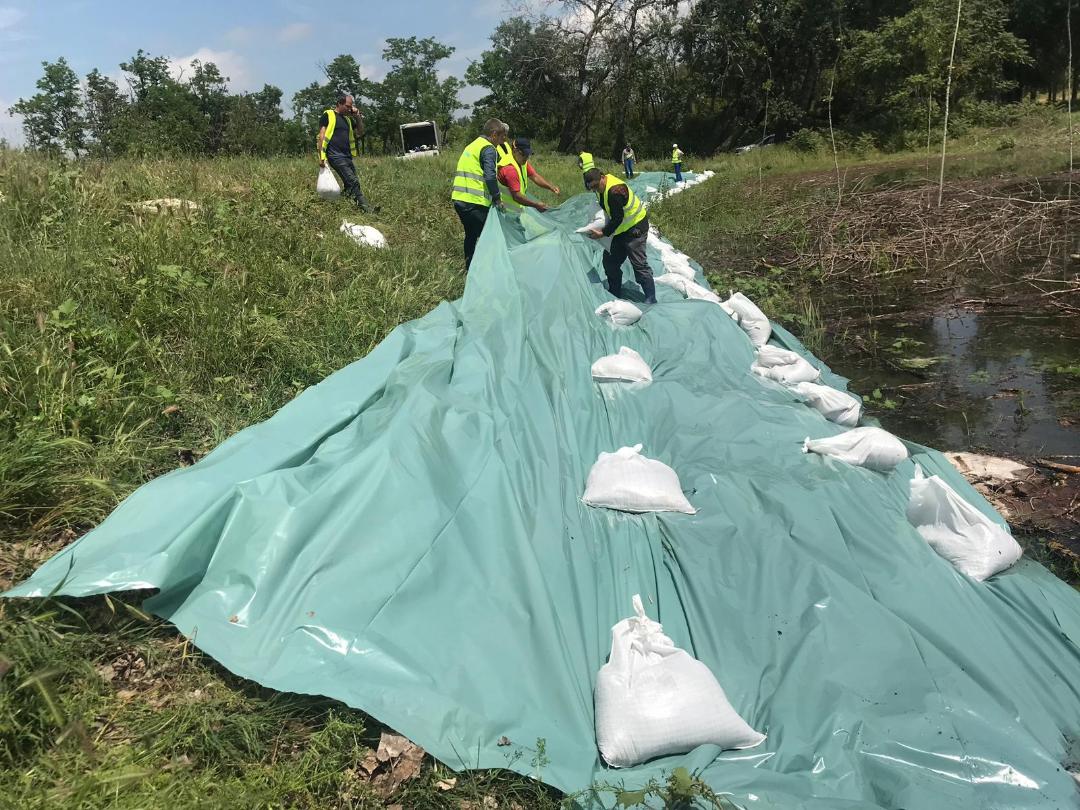 Pe lângă resurse umane au fost folosite resurse materiale şi maşini: saci, folie, autoutilitară, autobasculantă pentru transport nisip, autocamion.