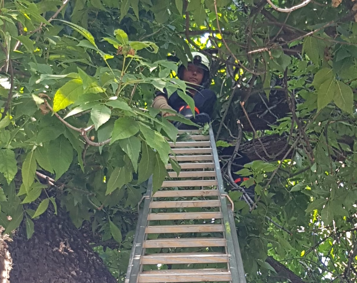 Detașamentul 2 Pompieri Craiova a intervenit, în după-amiaza zilei de luni pentru a salva doi pui de pisică prinși între ramurile unui copac din Parcul Pușkin.