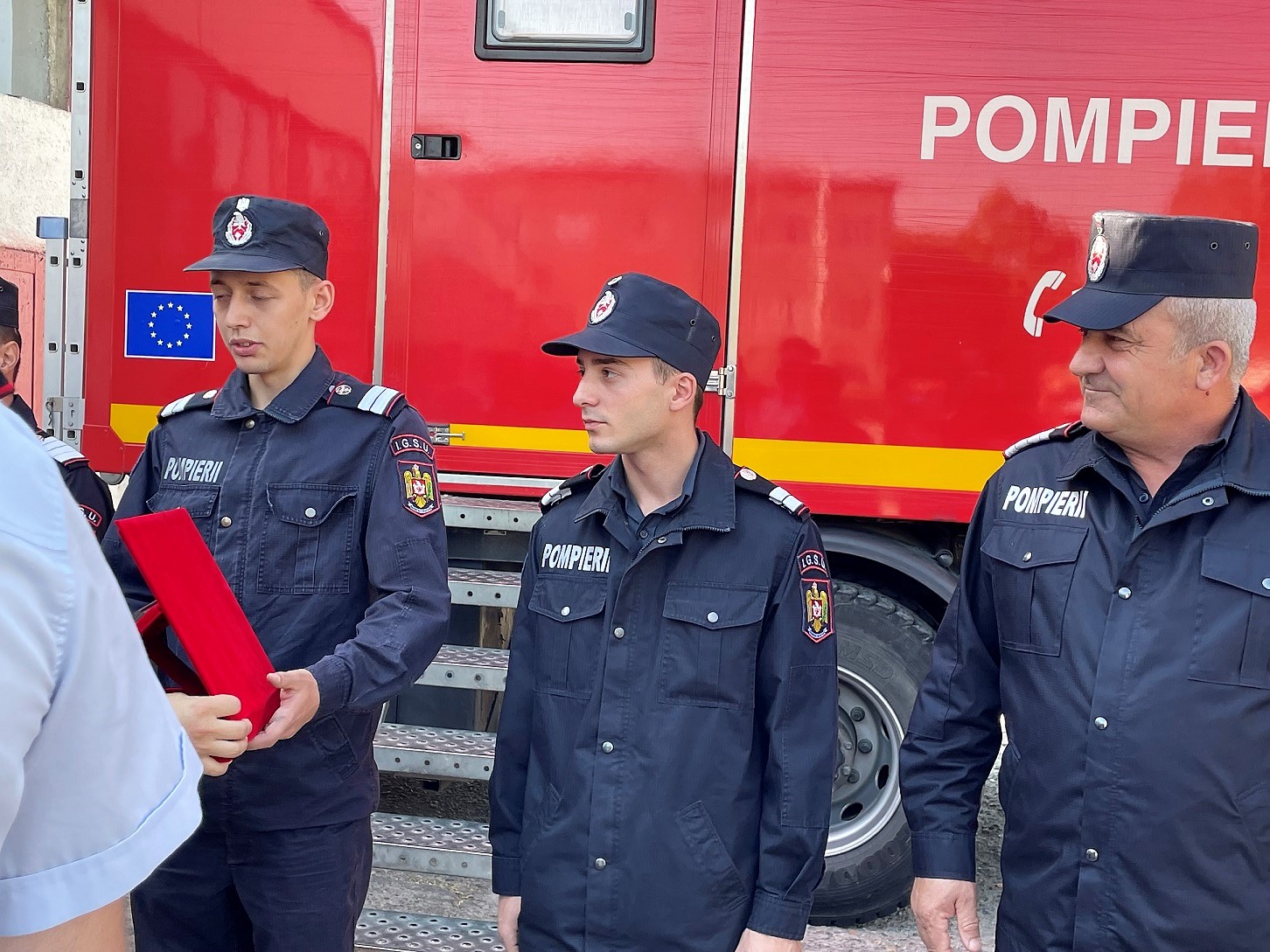 Căpitanul Adrian Aurelian AREȚU, plutonierii adjutanți șefi Ion Daniel HARAND, Gheorghe MARIN, Ionuț-Alin PASCU, Costină MORUGĂ, Florin STĂNESCU, plutonierul adjutant Daniel DIACONESCU și plutonierii Mihai ANDREI și Sebastian POPESCU sunt cei nouă pompieri care s-au luptat cu flăcările și au salvat în timpul misiunii, inclusiv o mânăstire.