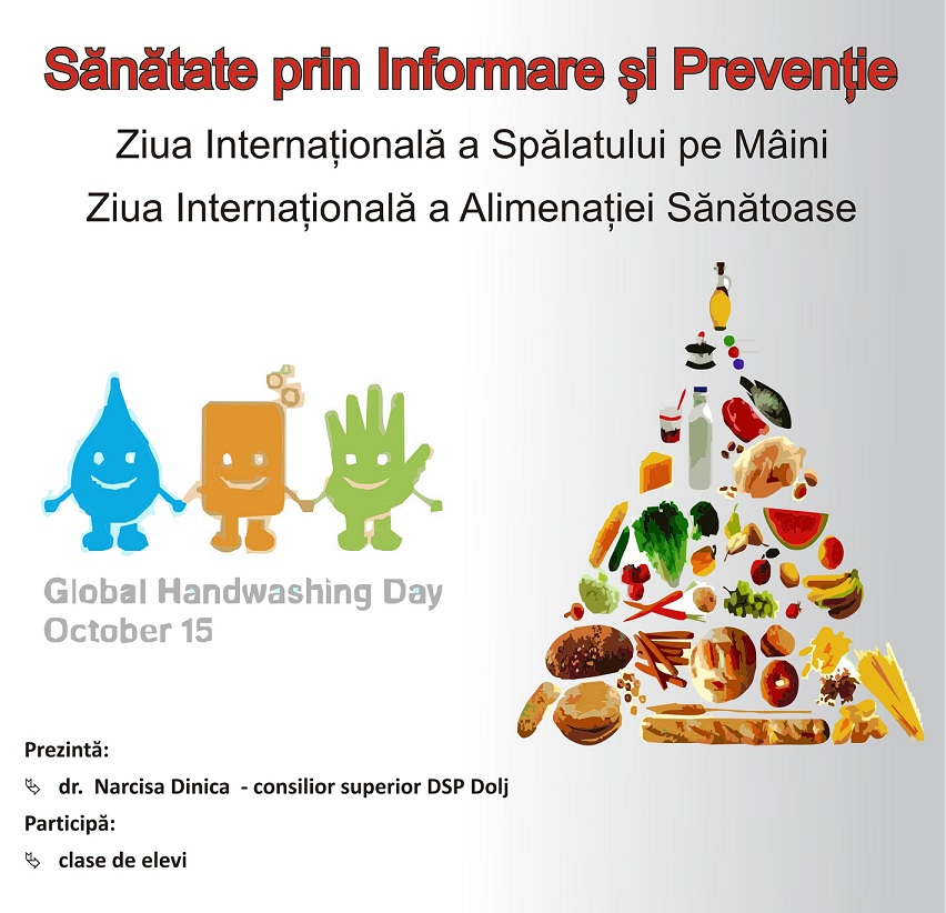 Acțiunea se desfășoară în contextul marcării Zilelor Mondiale ale spălatului pe mâini (15 octombrie) și alimentației (16 octombrie) și presupune susținerea unei serii de prezentări și informări pe care le va susține dr. Narcisa Dinica, consilier superior în cadrul Direcției de Sănătate Publică Dolj. La eveniment și-au anunțat participarea mai multe clase de elevi din municipiul Craiova.
