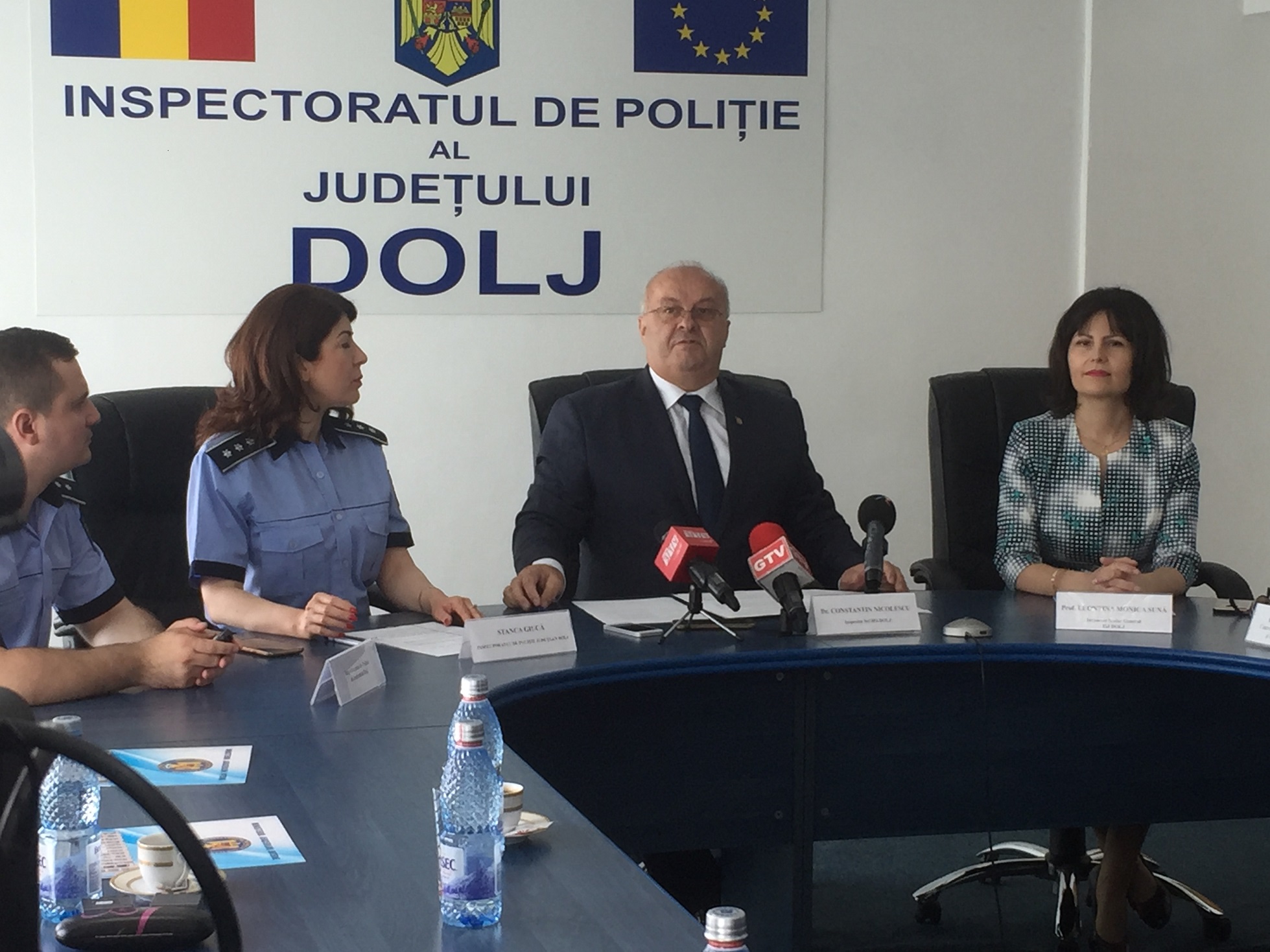 Astăzi, la Inspectoratul Județean de Poliție Dolj a debutat „Săptămâna Prevenirii Criminalității”. Aceasta se va desfășura zilnic, până pe 25 mai, pe mai multe paliere. Alături de șeful IPJ Dolj, Constantin Nicolăescu, au fost, ca de fiecare dată, partenerii tradiționali: Monica Sună, inspector școlar general, Florin Nicolăiță, Centrul de Prevenire Evaluare și Consiliere Antidrog, Maria Vintilă, reprezentant Crucea Roșie Dolj, Irina Gruia, Asociația Dezvoltare și Psihoterapie prin acțiune și Alina Barbu, Societatea Studenților Mediciniști Craiova.