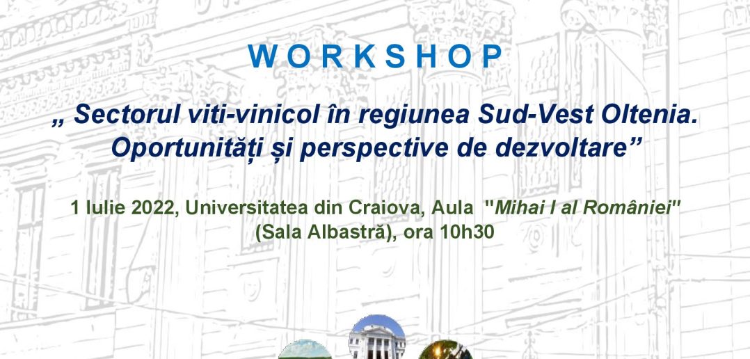 Facultatea de Horticultură, din cadrul Universității din Craiova, în parteneriat cu Ministerul Educației, Catedra UNESCO «Culture et Traditions du Vin», Asociația HORTUS OLTENIA 1962 și Societatea Horticultorilor Oltenia organizează workshop-ul „Sectorul viti-vinicol în regiunea Sud-Vest Oltenia. Oportunități și perspective de dezvoltare”. Evenimentul va avea loc vineri, 1 iulie 2022, ora 10:30, în Aula ꞌꞌMihai I al Românieiꞌꞌ (Clădirea centrală, strada A.I.Cuza, nr.13).