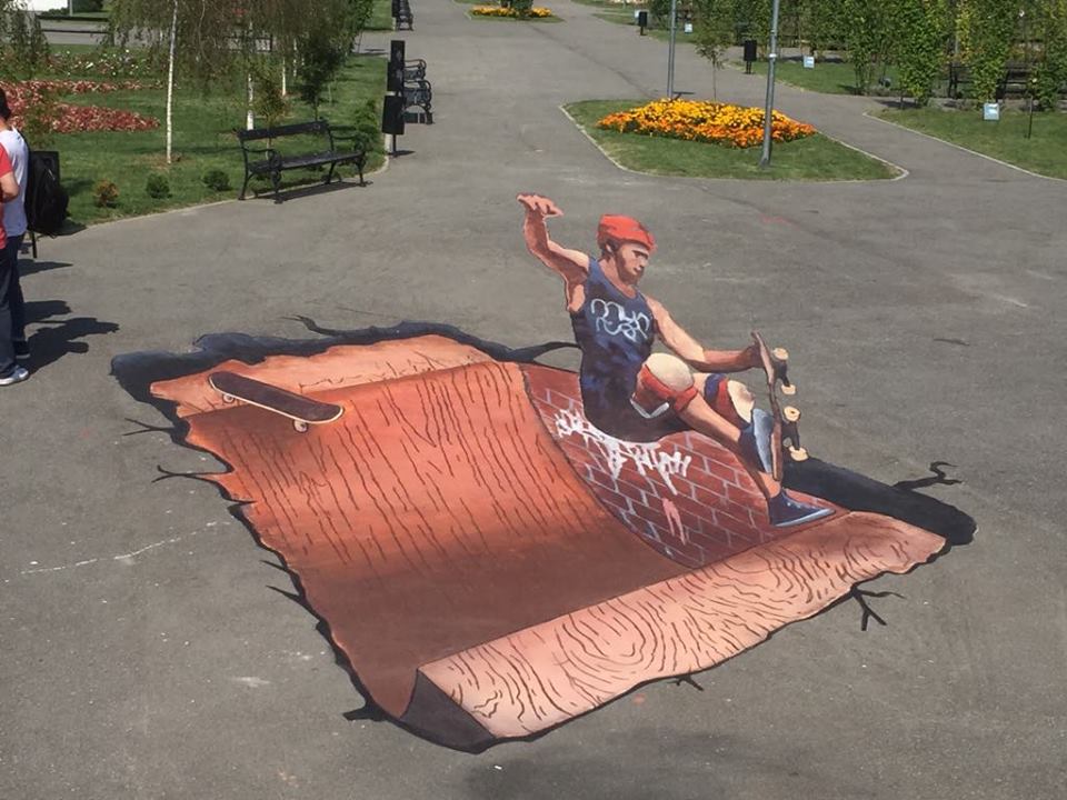 Bianca Stancu, tânăra pictoriță a explicat conceptul desenului prezentat publicilui astăzi: „Conceptul a pornit de la un skater care se dă pe rampă și ne-am gândit să facem cumva ca pictura să fie interactivă și pentru oamenii de aici și ne-am gânit să amplasăm și un skateboard pe rampă ca oamenii să poată să se fotografieze. Lucrarea este realizată în culori acrilice și peste ea vom da un strat de lac pe baza de rășină”.