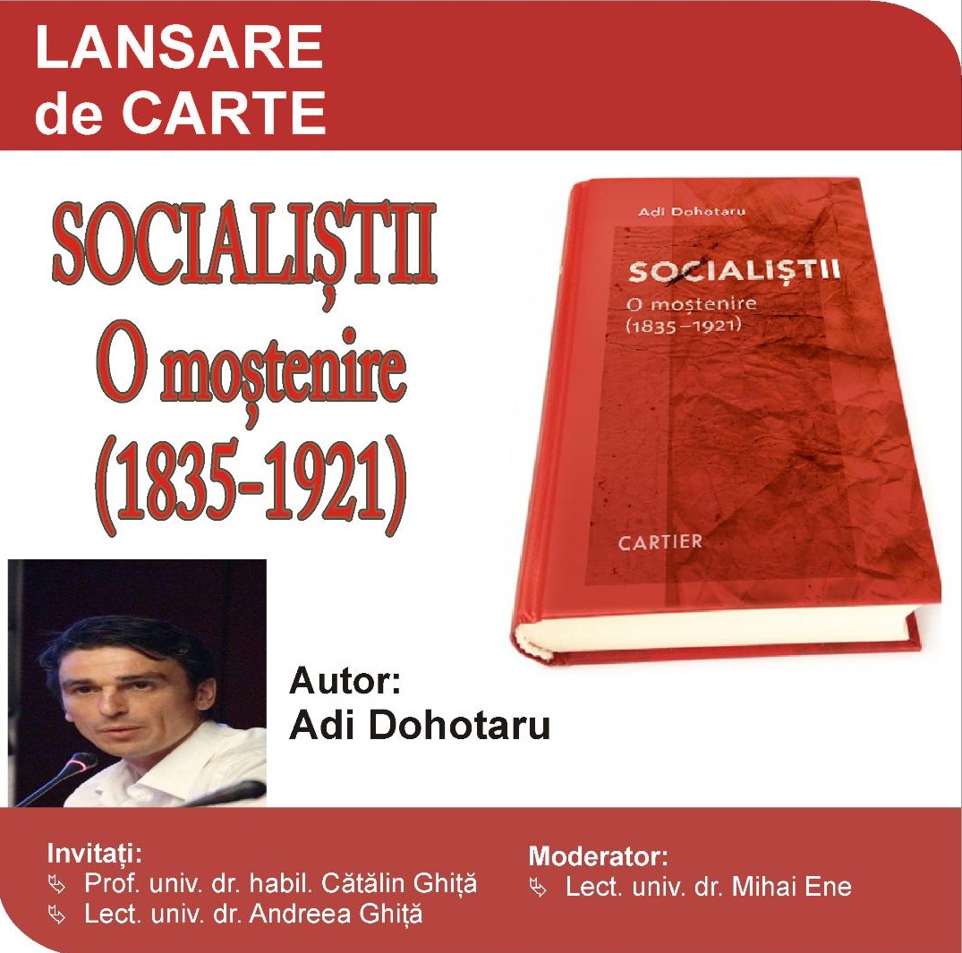 Biblioteca Județeană „Alexandru și Aristia Aman” găzduiește marți, 19 noiembrie 2019, începând cu ora 16:00, în sala „Acad. Dinu C. Giurescu”, lansarea volumului „Socialiștii: o moștenire (1835-1921)”, autor Adi Dohotaru. La eveniment și-au anunțat participarea Cătălin Ghiță, Andreea Ghiță și Mihai Ene, ultimul în calitate de moderator al întâlnirii.