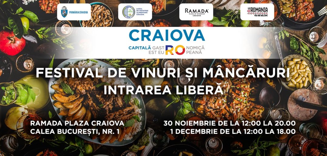Chefi și specialiști în gastronomie din 11 țări est-europene vor prezenta preparate specifice la deschiderea “Festivalului de vinuri și mâncăruri” care va avea loc sâmbătă, 30 noiembrie, la Ramada Plaza Craiova, de la orele 12:00.