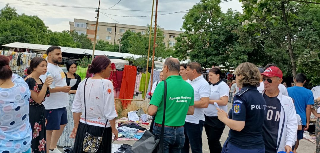 În această dimineață, polițiștii de la Analiză și Prevenire a Criminalității Dolj, ajutați de către colegi din cadrul Secției 2 Poliție Craiova au fost prezenți alături de specialiști de la Centrul de Prevenire, Evaluare și Consiliere Antidrog Dolj la o acțiune în Târgul de Săptămână din Craiova-1 Mai. Parteneri le-au fost tinerii din cadrul organizației de studenți ai Asociației „Partida Romilor Pro Europa” Oltenia.