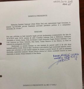 PNL Dolj ia act de o încălcare gravă a legii electorale prin organizarea unei activități cu caracter politic de către Biblioteca Județeană „Alexandru și Aristia Aman” din Craiova: un volum cu un conținut defăimător la adresa unor candidați la alegerile prezidențiale va fi lansat de către o instituție publică aflată în subordinea Consiliului Județean Dolj. Atât Consiliul Județean Dolj, cât și biblioteca sunt conduse de PSD prin Ion Prioteasa și Lucian Dindirică (consilier local PSD Craiova).