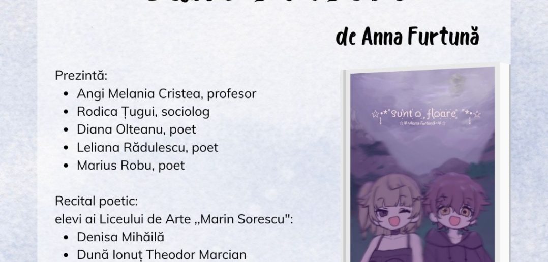 Biblioteca Județeană „Alexandru și Aristia Aman” găzduiește joi, 19 octombrie 2023, lansare volumului „Sunt o floare” autor Anna Furtună. Invitați la eveniment sunt: Angi Melania Cristea, Rodica Țugui, Diana Olteanu, Leliana Rădulescu și Marius Robu.