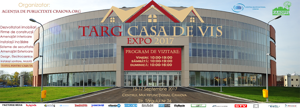 Agenţia de publicitate Craiova.org organizează Târgul “Casa de vis” – Expo 2017, în perioada 15 septembrie – 17 septembrie 2017, la Centrul Multifuncţional din Craiova. Amplul eveniment are drept scop reunirea sub aceeaşi cupolă a furnizorilor de diverse servicii care au legătură directă cu conceptul de casă. Aici veţi putea obţine oferte de la dezvoltatori imobiliari, agenţii imobiliare, firme de construcţii, de amenajări interioare, firme care produc şi comercializează mobilier, centrale termice, sisteme de încălzire, corpuri de iluminat, fier forjat, pavaje, obiecte sanitare, marmură, granit, uşi de interior/exterior, porţi de garaj, plante, flori, tâmplărie termoizolantă, tablouri, veselă, covoare, etc.